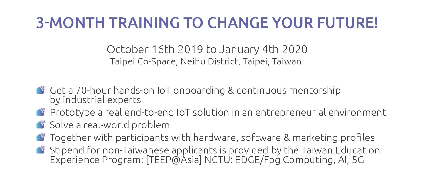 培訓地點:臺北創新實驗室Taipei Co-Space, 台北市內湖區洲子街12號3樓