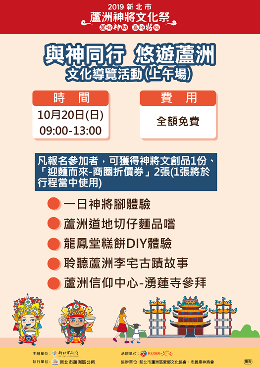 - 協辦單位:峰辰股份有限公司、新北市蘆洲區愛鄉文化協會、蘆洲忠義廟神將會