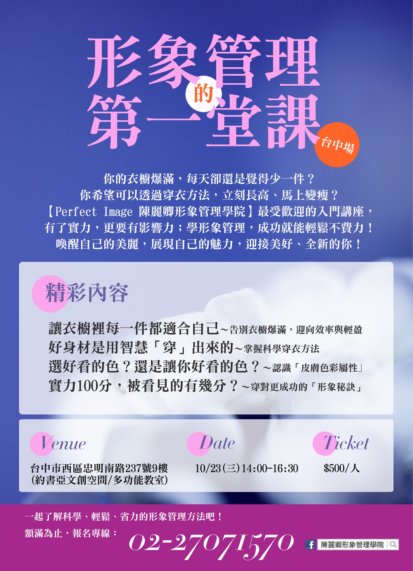 【Perfect Image 陳麗卿形象管理學院】最受歡迎的入門講座,