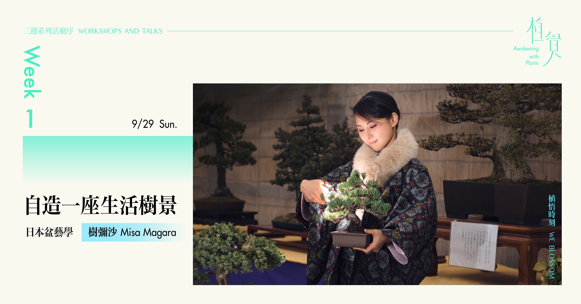 在這堂盆藝學中,來自日本的盆藝家樹彌沙,將透過細緻有趣的教學,與你分享盆藝世界中的迷人之處,學習透過盆景藝術,為自己的日常生活創造一座微型樹景。