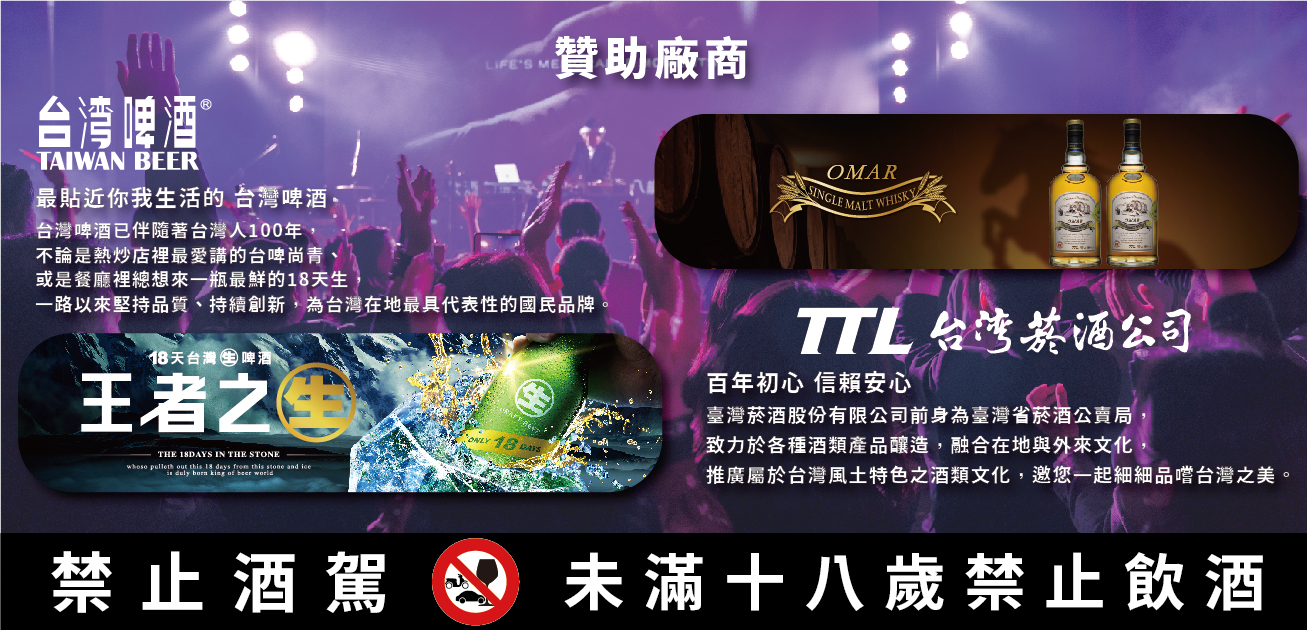 (2) 報到時請出示線上購票憑證及身份證件以兌換入場手環,憑入場手環兌換免費指定飲品乙杯及參與抽獎活動乙次,現場另售輕食小點及各式飲品。若活動過程中入場手環遺失、毀損恕無法補發及入場請務必妥當保管入場手環。