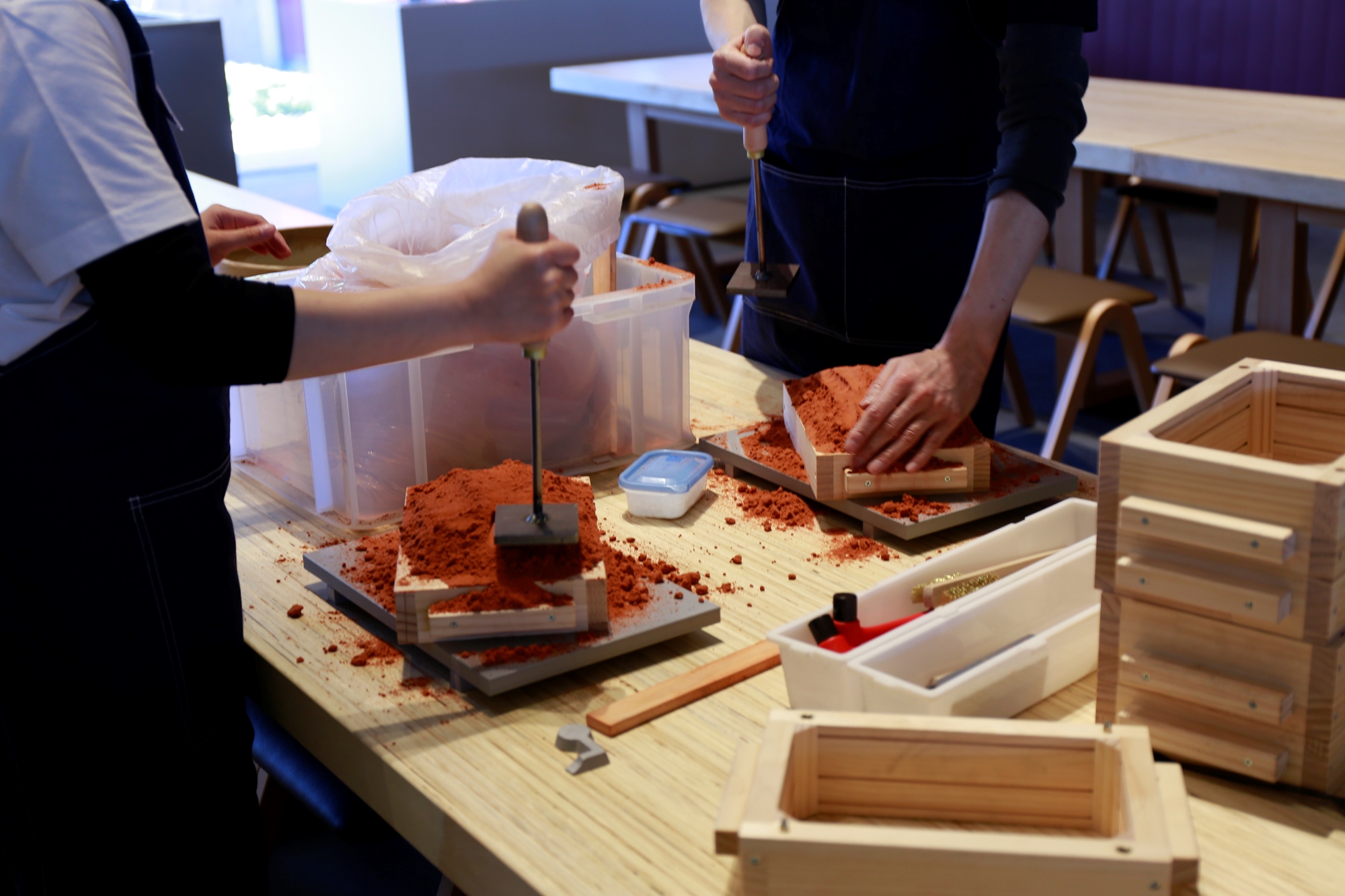工作坊體驗將實地操作流傳400年的錫器鑄造「壓固生砂法」技術,體驗製作錫器的過程,將做好的模型,灌砂做成砂模,再將錫漿灌入砂模中,成形后敲掉砂模,親手製作一件專屬獨享的錫器。