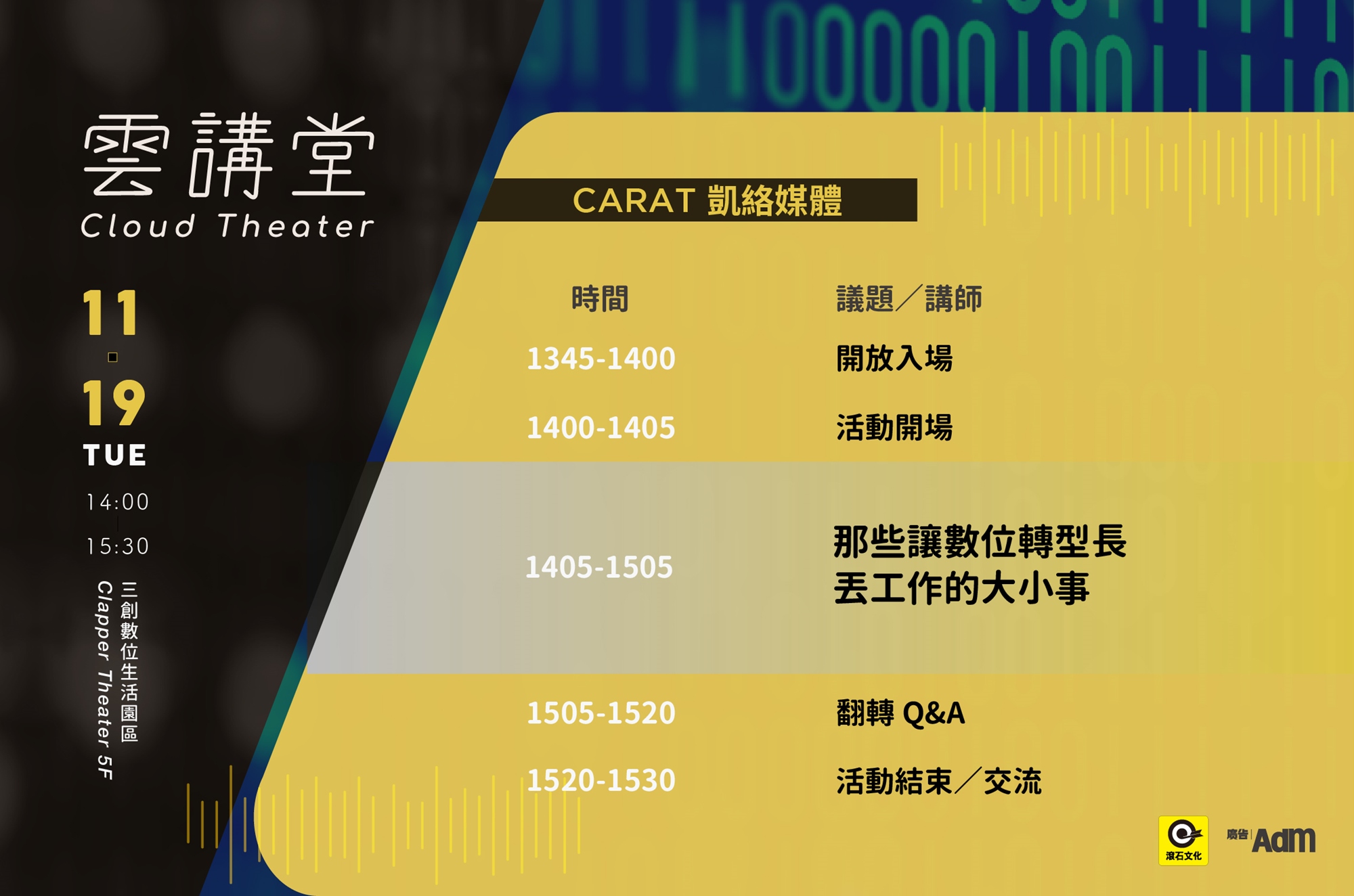 - 若您報名後無法參加,請於11/15(五)前取消票券或來信通知,以維護其他學員欲出席權利,謝謝您!