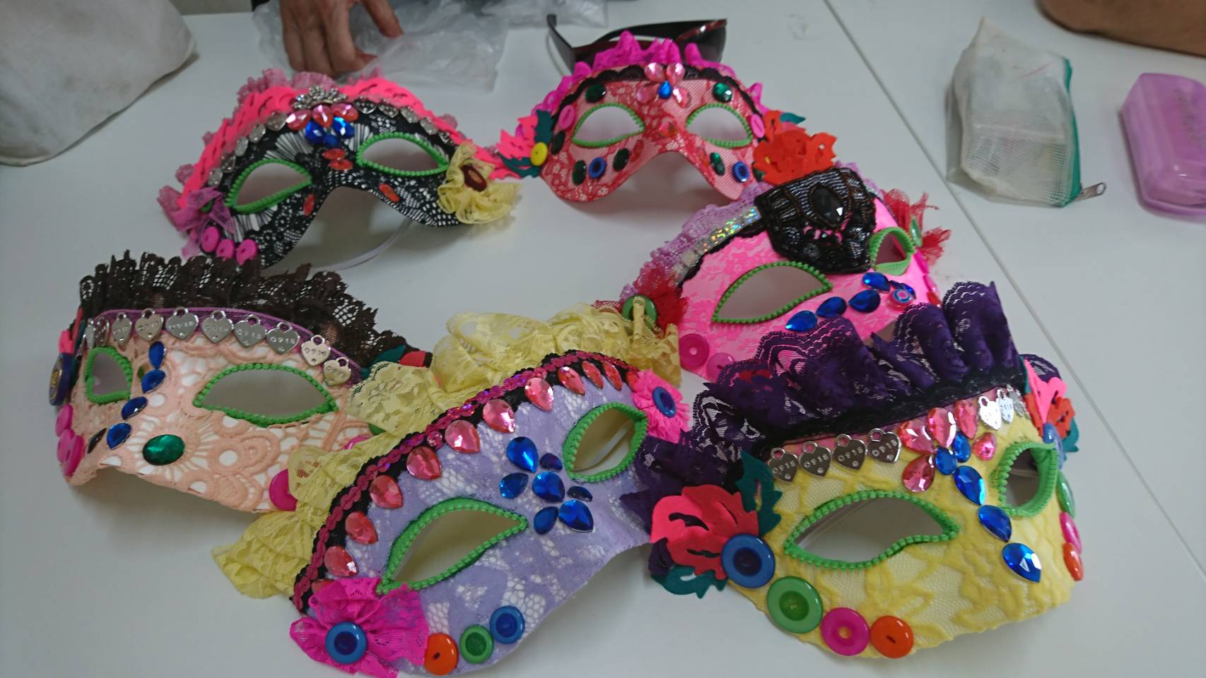 由講師現場講解面具製作過程。民眾現場DIY製作舞會面具,打造獨樹一幟的風格裝飾。