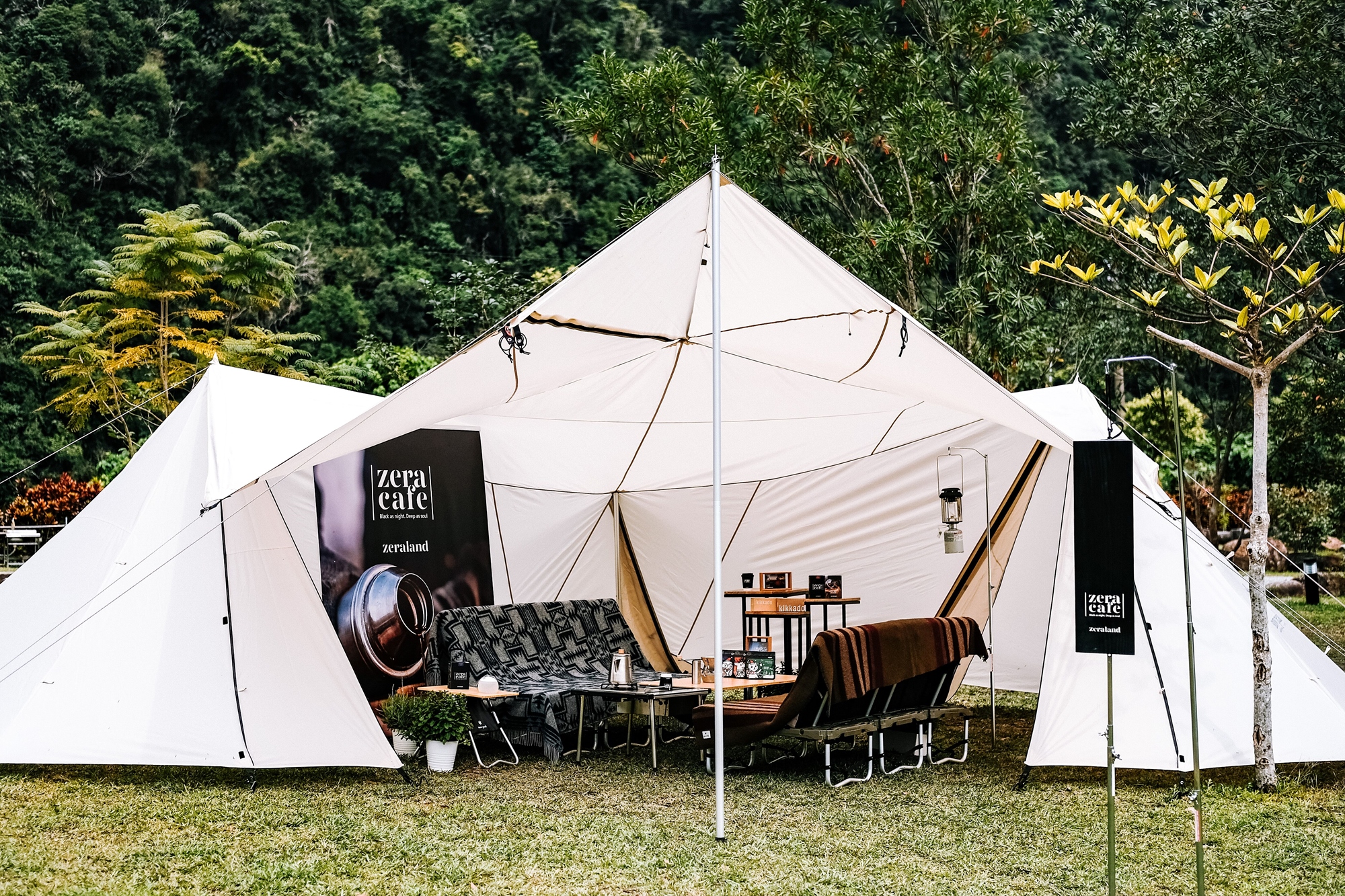 此包廂與露營界LV之稱的日本頂級戶外品牌-Snow Peak合作,從帳篷到桌椅以及擺設小物都是最豪華的組合,並且這次與 ZeraCafe 聯名,可以說是一個可遇不可求的機會!讓我們一起帶著ZeraCafe單品好咖啡的自由、品味與率性,享受最奢華的戶外生活吧!