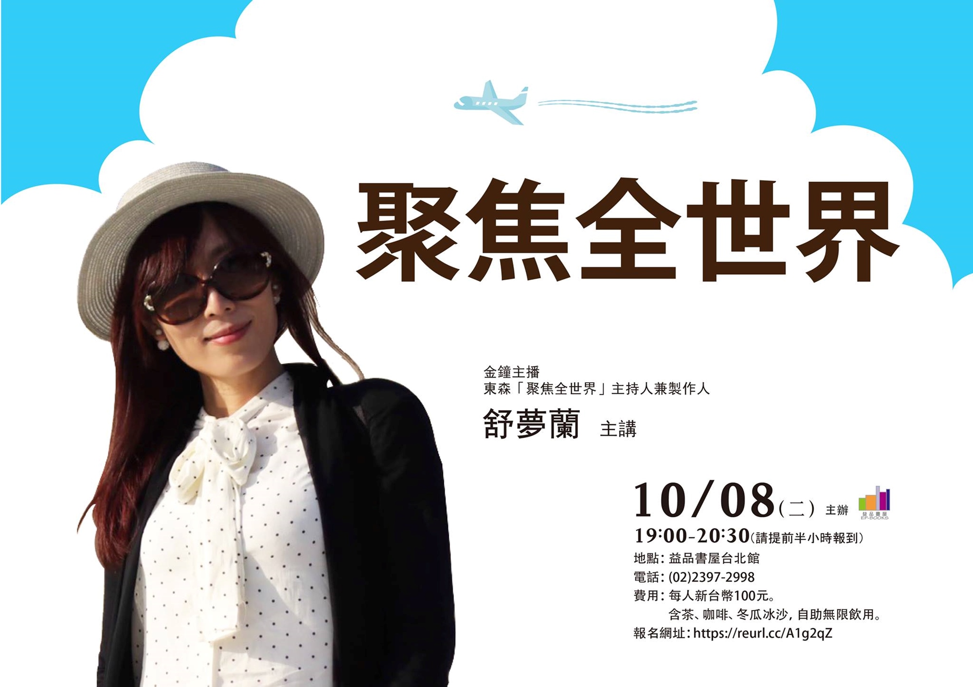 分 享 者: 舒夢蘭 金鐘主播、東森 「聚焦全世界」主持人兼製作人