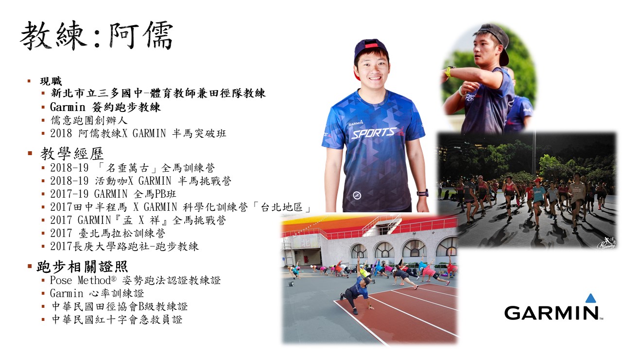 課程中全程使用GARMIN 運動手錶結合官方軟體GARMIN SPORTS 輔助監控訓練狀況。讓你順利完成初次馬拉松!!