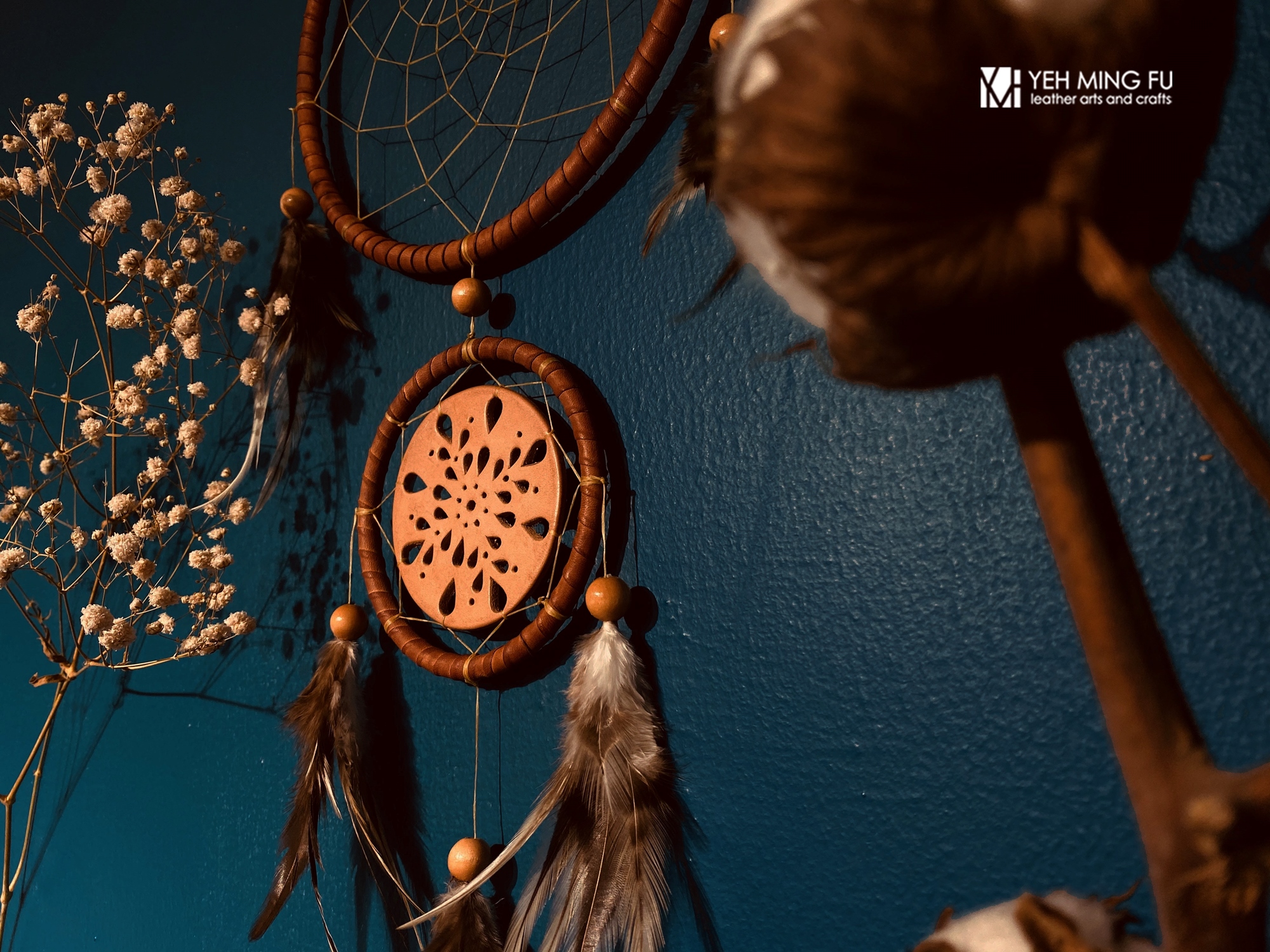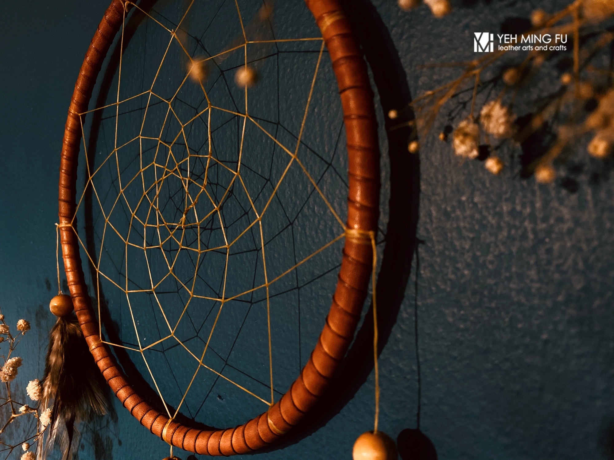 ◎皮革纏繞捕夢網框