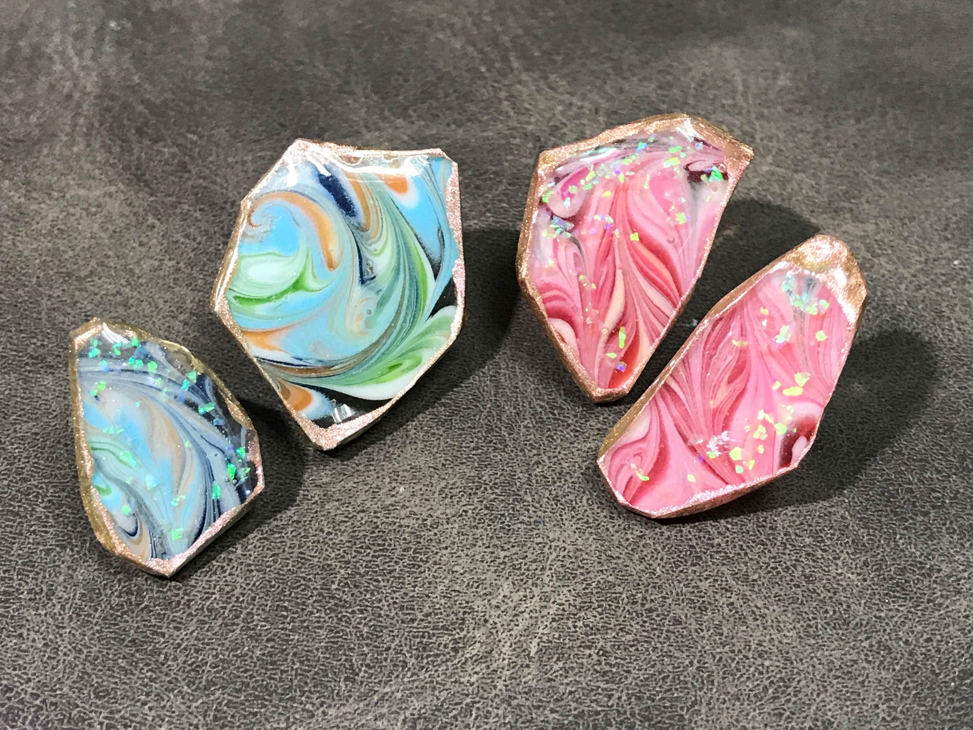 使用凝膠樹脂、利用不同的技巧製作不規則型的飾品。