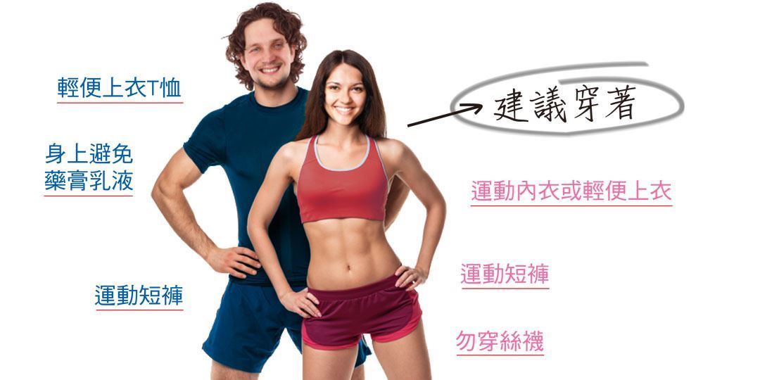 - 建議穿著輕便服裝,說明如下 :