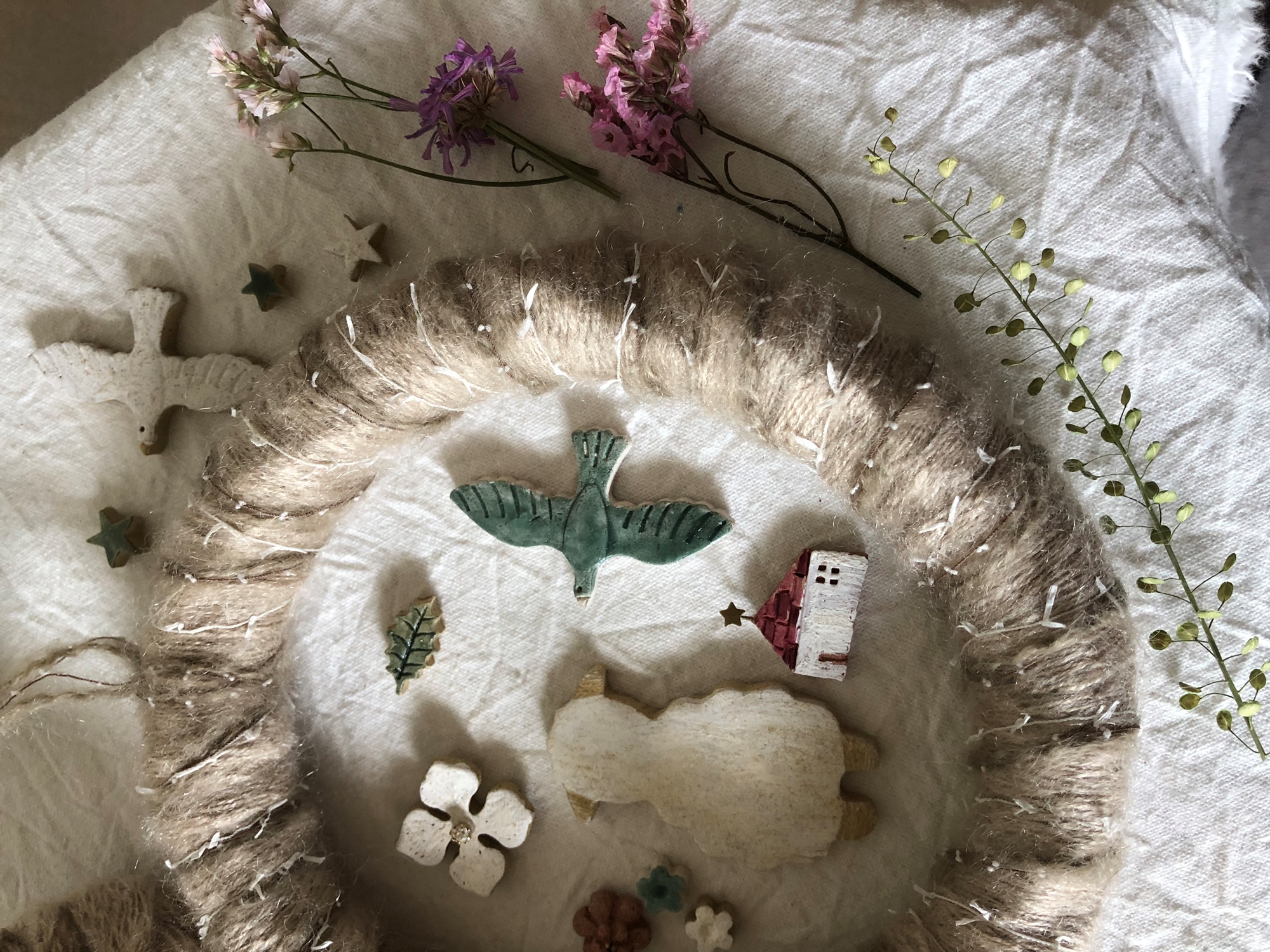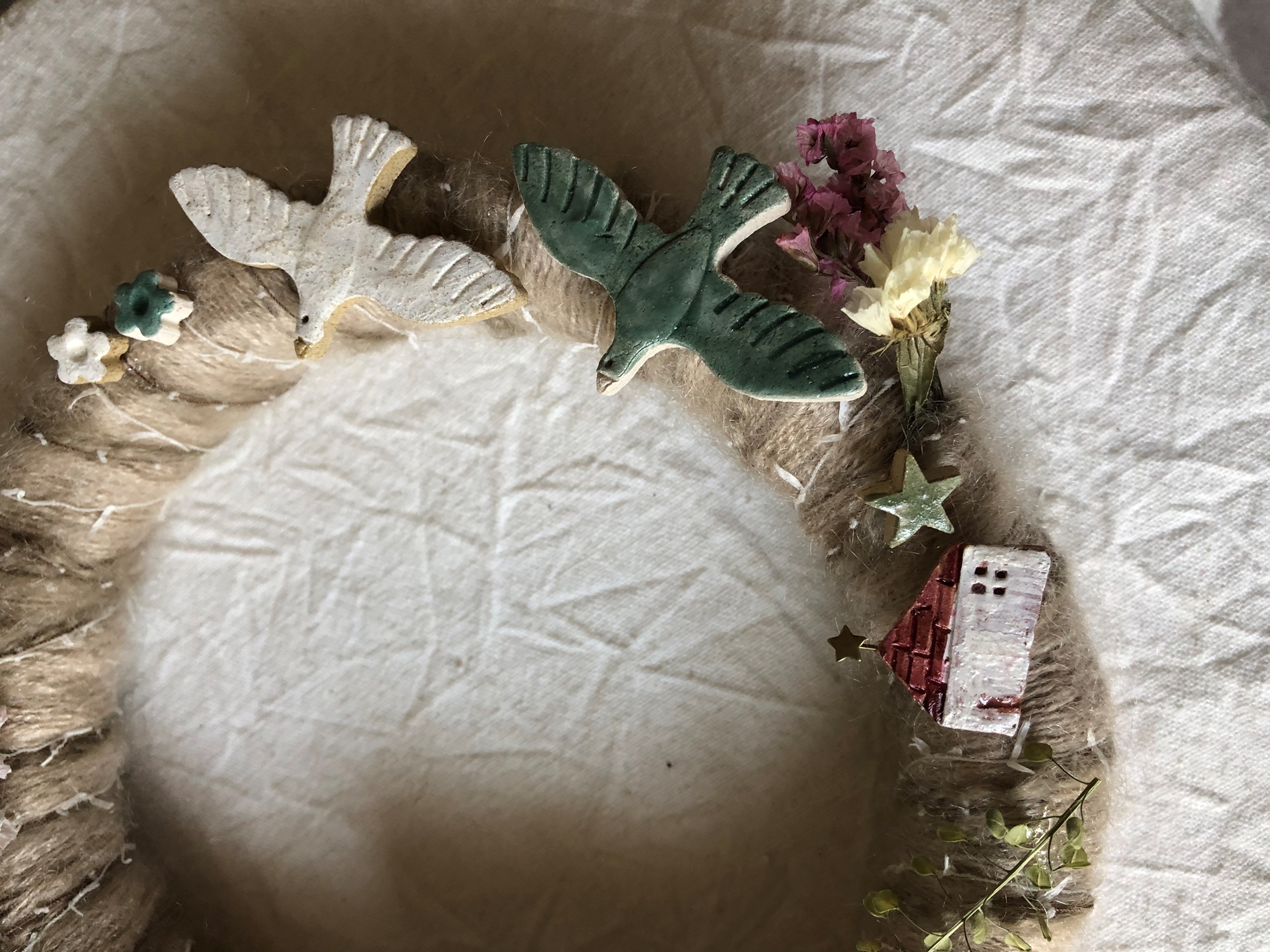 完成作品- 陶土花圈一個