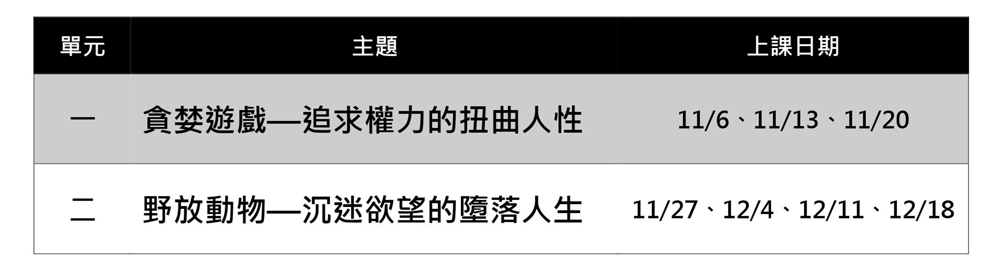 【單元一 貪婪遊戲】 3堂 $ 1950元整