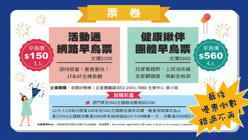 全台絕無僅有「最大健康派對」快快把握機會!現在就購票!