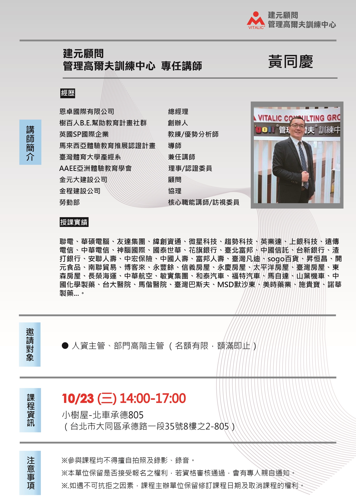 邀請您一同在建元顧問專任講師黃同慶先生的帶領下,