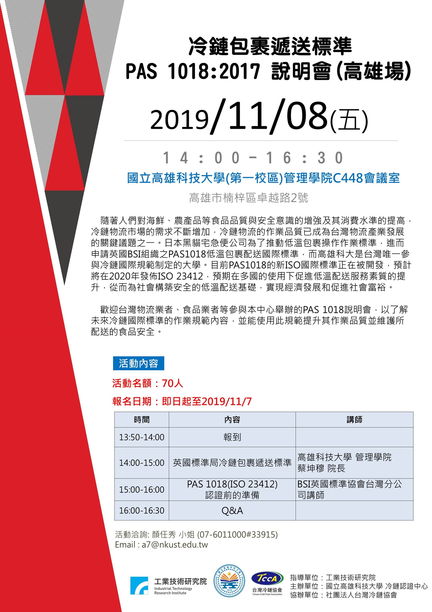 冷鏈包裹遞送標準 PAS 1018:2017 說明會(高雄場)