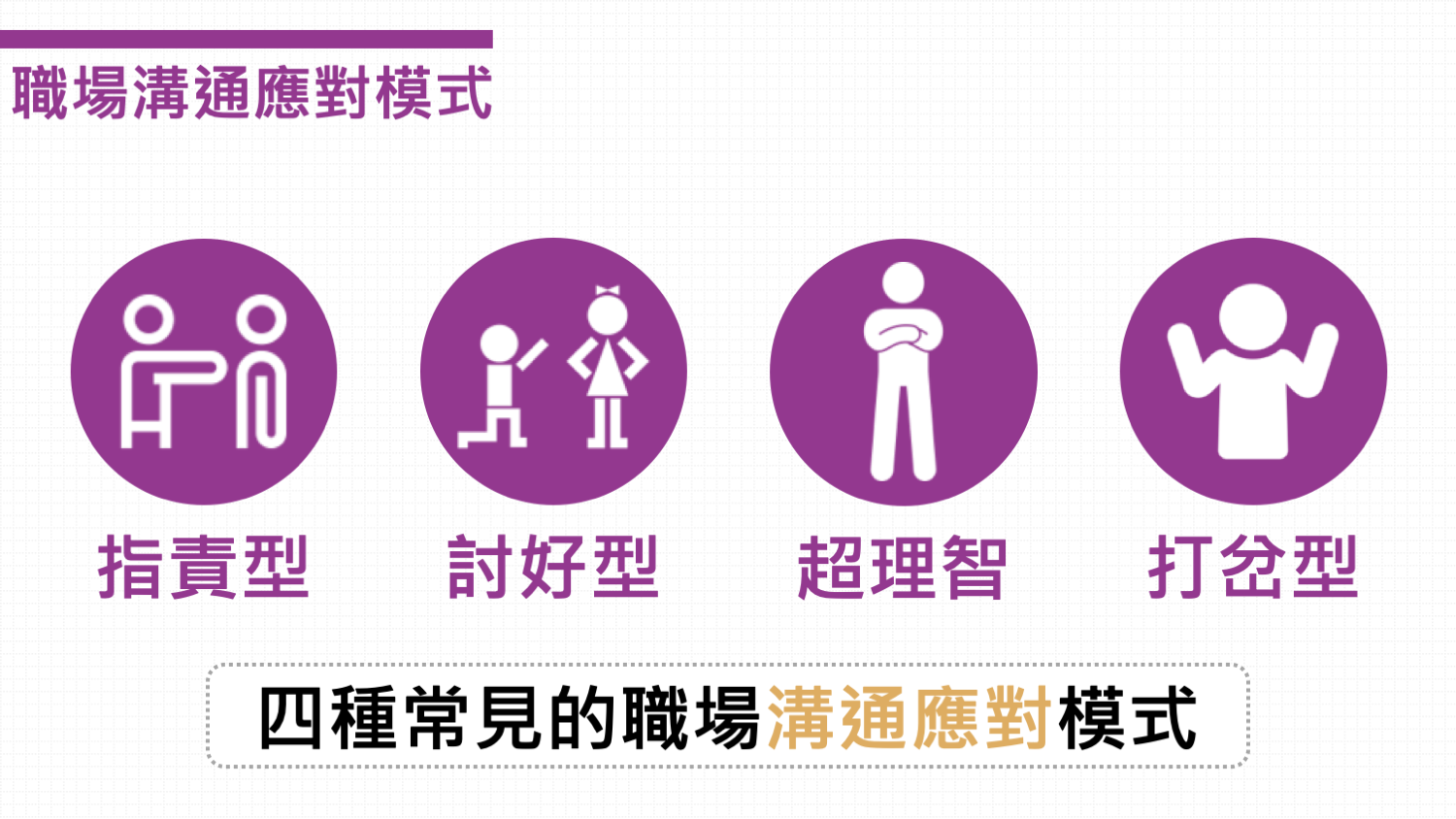 如果你遇到了這四種類型的主管,該如何與他們溝通?相處?才能避免踩雷跟爭取加薪呢?不論你是職場菜鳥、老鳥還是管理者,想要在職場上生存、贏得好人緣、永續經營你的事業,「溝通」不只屬於業務、顧問等某類職務的需求能力。
