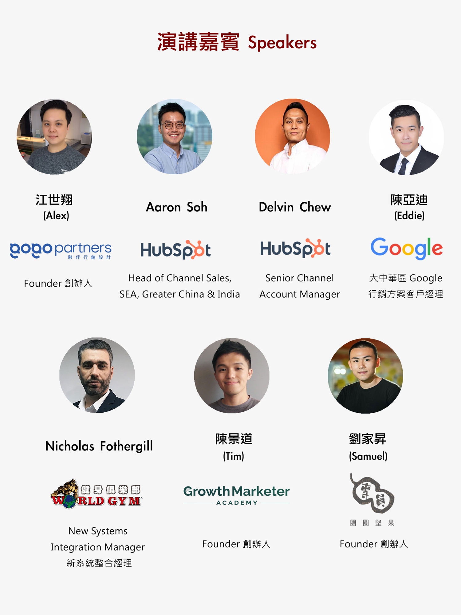 HubSpot 總部的資深客戶經理 Delvin 也將透過大螢幕分享 SEO, 廣告投放,數據分析,email 行銷 & 行銷自動化的實際畫面,讓你一窺專業行銷人如何設定後台來放大他們的投資報酬率。這是難得一見的 Live 現場實境分享,千萬別錯過!