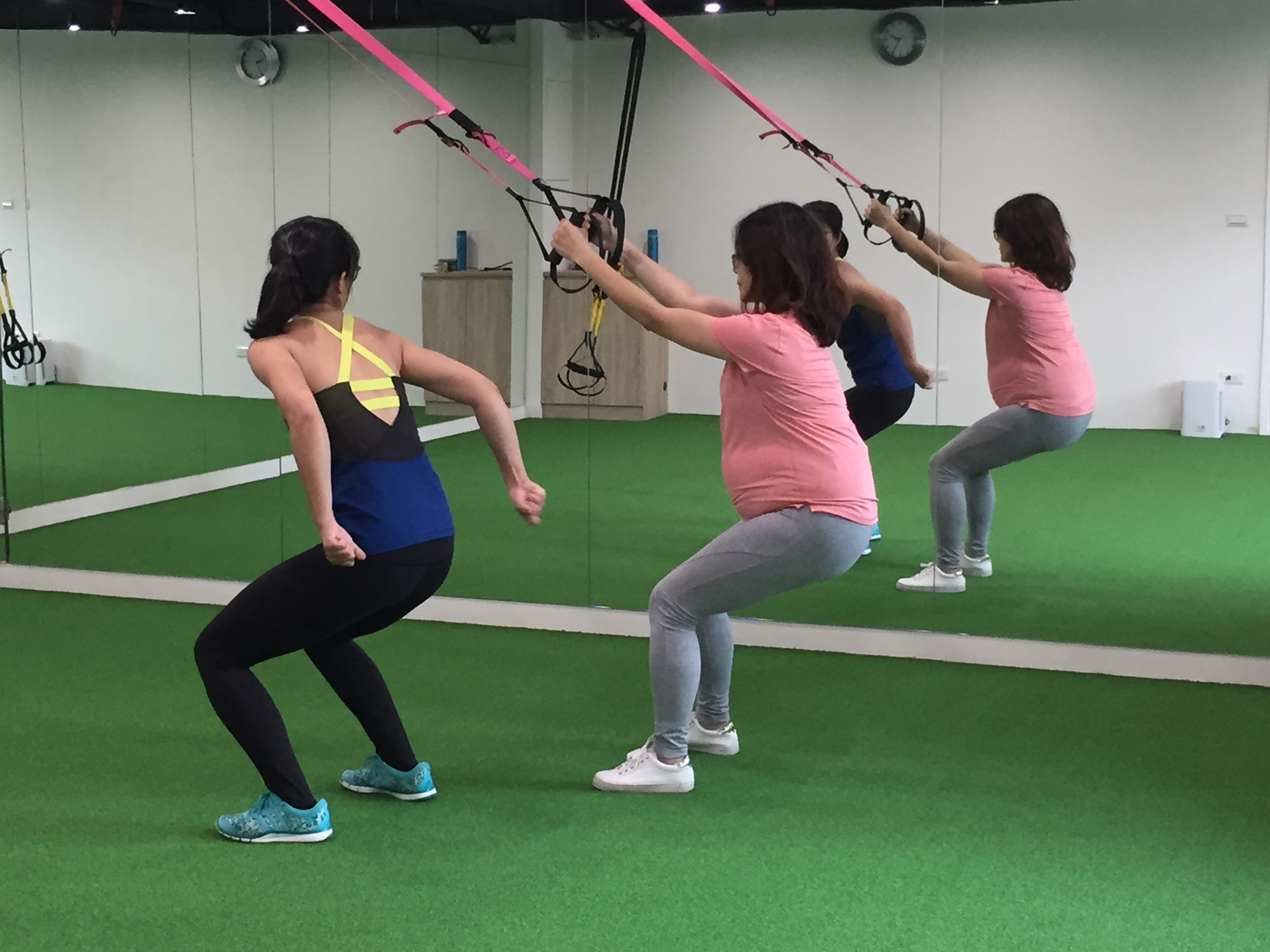 提供孕期多樣課程:TRX、彈力球、瑜珈、仨人瑜珈(爸爸媽媽寶寶)