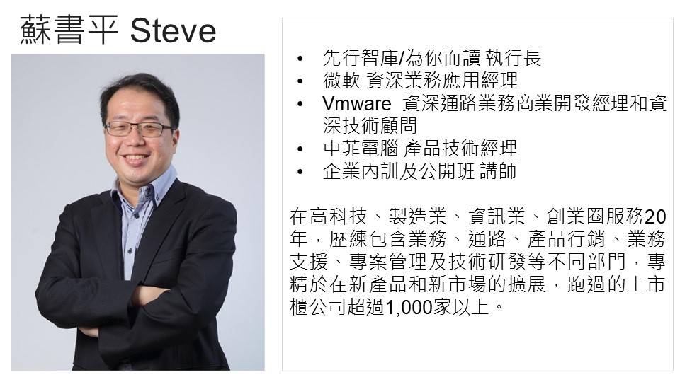本課程由為你而讀執行長/前微軟業務經理-蘇書平Steve授課。