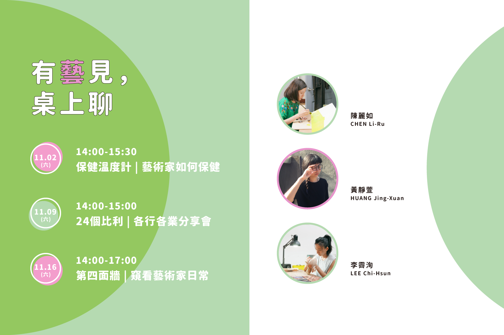 2. 11/9(六) 14:00-15:00|24個比利-各行各業分享會/共享福利社