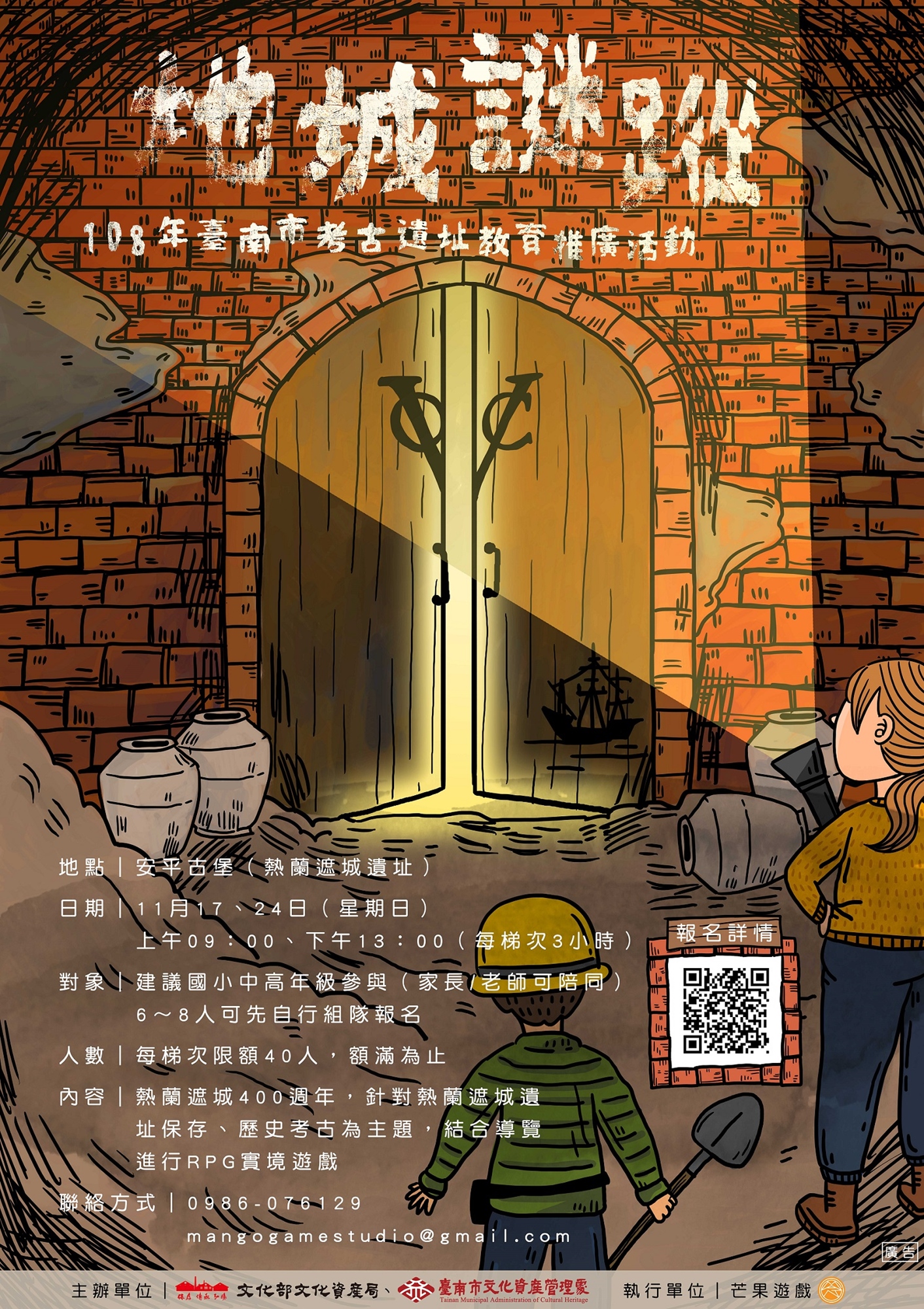 以「熱蘭遮城遺址」及「歷史考古」為主題,從遺址探坑及博物館導覽開始,透過考古發掘工作及成果不僅認識熱蘭遮城古今差異,以及理解考古工作的意義與內涵,希望藉由多元學習理解文化資產遺址保存的重要性。