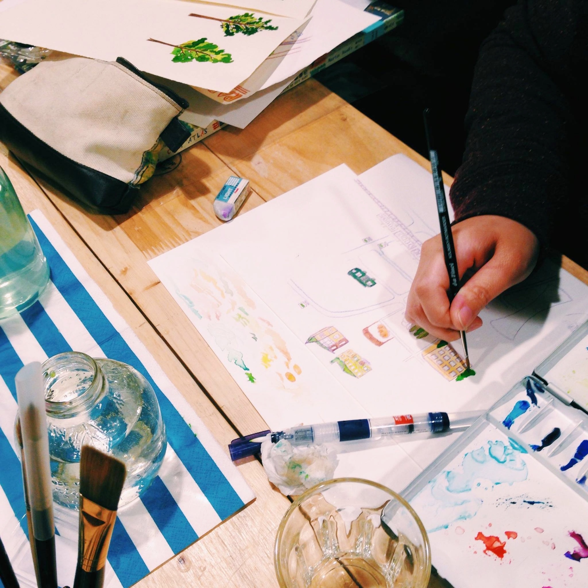 本次課程邀請到Hello Studio的插畫旅行作家Reiko,帶領大家從生活或是旅行中隨處可得的複合媒材出發創作。