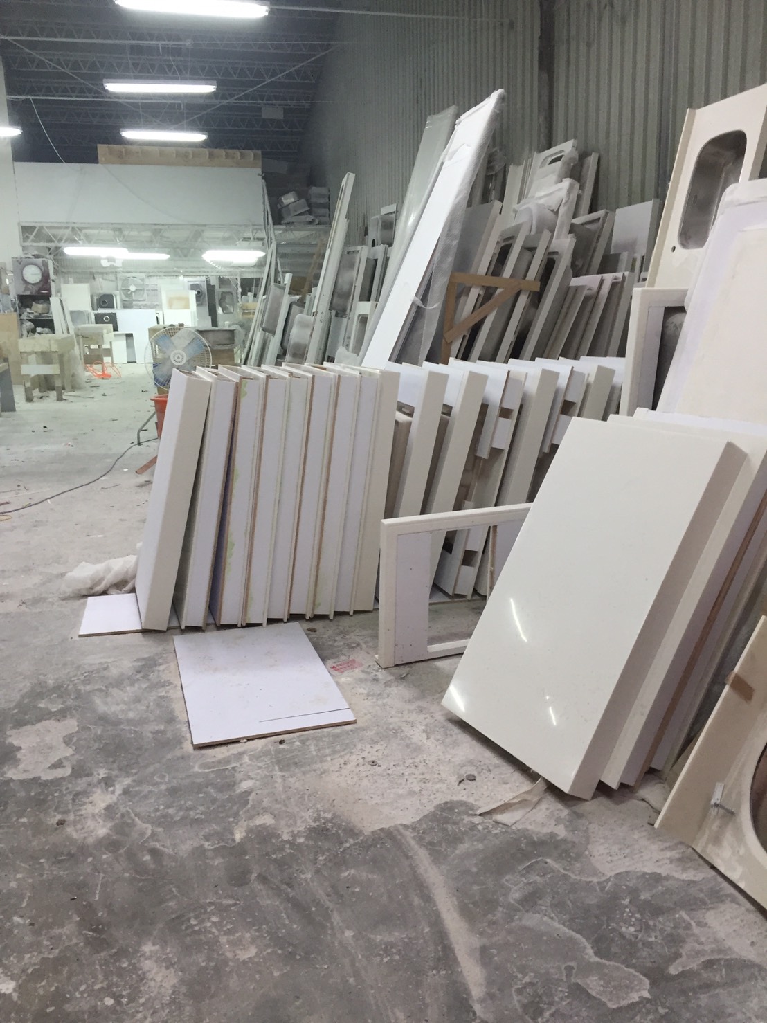 人造石加工廠,裡面資深的師傅擁有多年資深經驗,透過他們的解說,我們將會更加了解人造石的特性及他們的加工工法、製造流程。