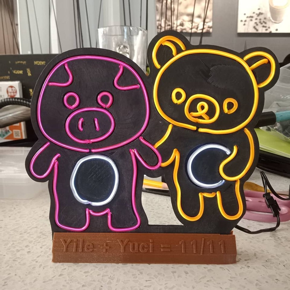 我們以冷光線仿製霓虹光管燈牌,4種公款可以讓您挑選想挑戰的燈牌、另外有8種冷光線顏色可以讓你搭配 (白色、冰藍、藍色、黃色、粉紅、橘色、綠色、紫色)。