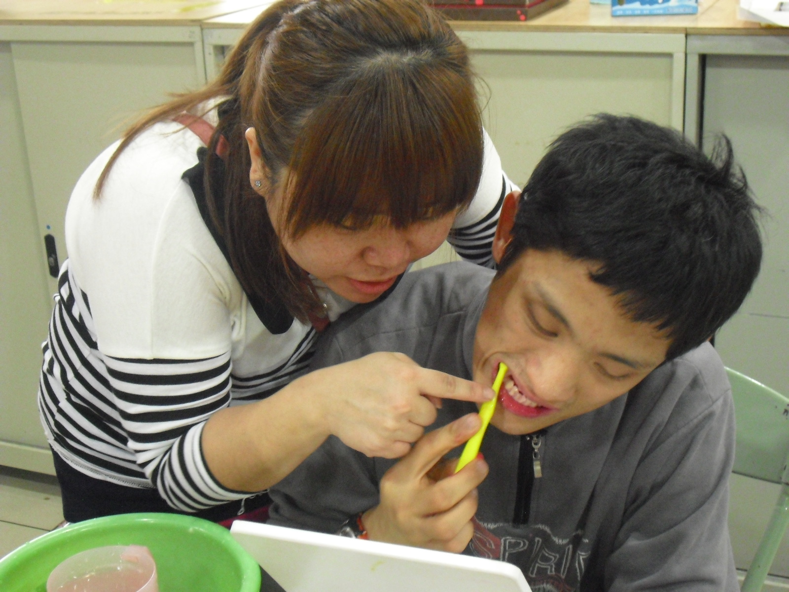 憨兒母子小蓮和小全,曾經在街頭靠民眾救濟維生,過著有一餐沒一餐的日子。來到仁友後,他們才得以溫飽、學習如何生活自理,以及培養簡單的工作能力,也在這裡遇到像家人一樣的老師朋友,再次擁抱家庭的溫暖。