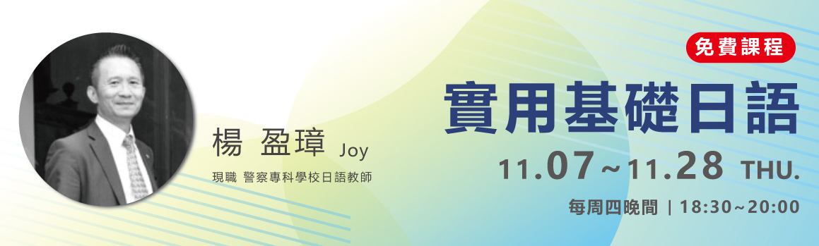 🇯🇵實用基礎日語:11月的每周四18:30~20:00開課