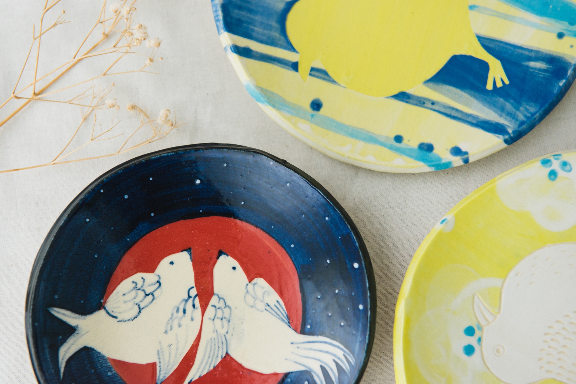 學員們先享受療癒的做陶時光,再為自己製作的陶盤裝飾上色,完成獨一無二的風格花鳥盤。