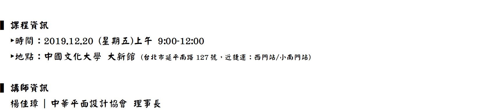 2019.12.20 (Fri) 09:00 - 12:00 (GMT+8)
