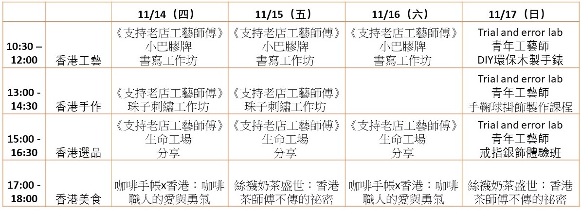 今年的主題城市香港以香港街市的概念進行展出,由來自生命工場REstore個體小店文化保育帶來青年工藝師與老店師傅的分享,同時會有小巴膠牌與繡花鞋的製作工作坊。 以及生命工場的小型講座。
