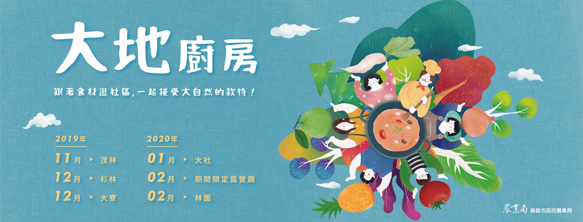 高雄大地廚房以「回歸土地」為主軸,「一起到田裡開飯」為主題,強調從產地餐桌,使用在地食材入菜,並將廚房設在農村中,邀請遊客進入社區,與在地農民或廚師利用在地食材一起認識農產、一起料理、一起共食。