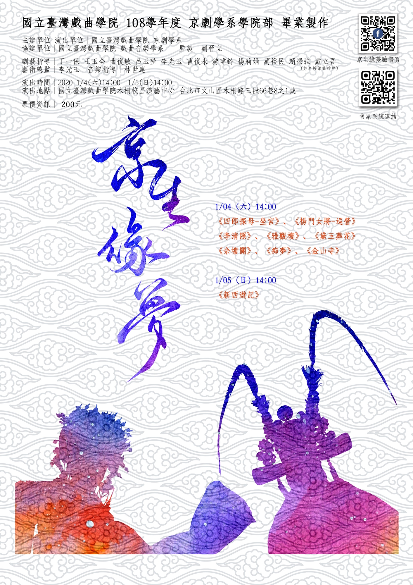 ◎109年1月04日星期(六) 14:00 《京生緣夢》-經典傳統折子戲