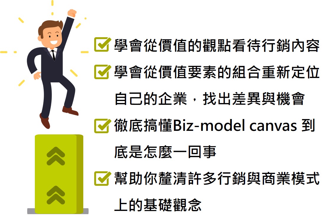 如今光是產品功能的競爭,已無法讓品牌在市場上擁有持續獲利的能力,尤其當您想跳脫削價競爭,提高業績與獲利,或正處於創業初期,想更穩健地踏進市場,更需要從商業營運的角度,明確掌握「價值主張」、「價值定位」等商業模式關鍵元素的建構,才能讓品牌在競爭洪流中的找到乘風破浪的契機!