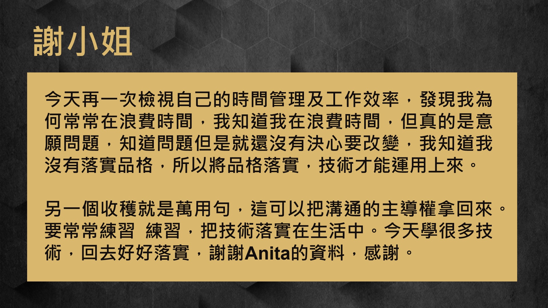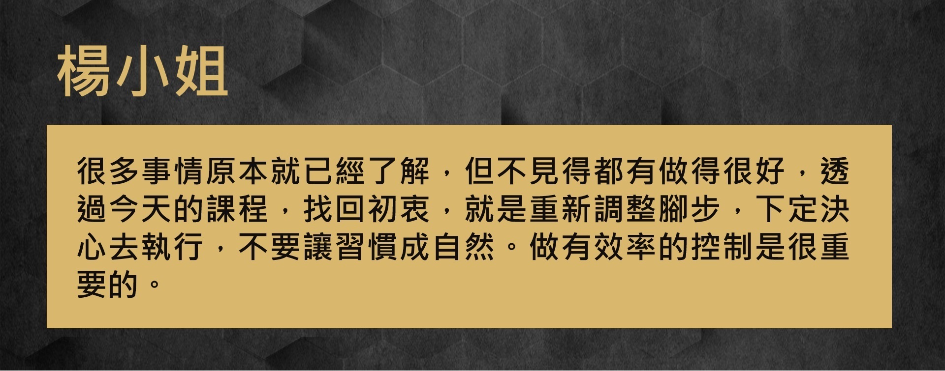 - 實際演練個人真實狀況,讓你能夠隨學隨用