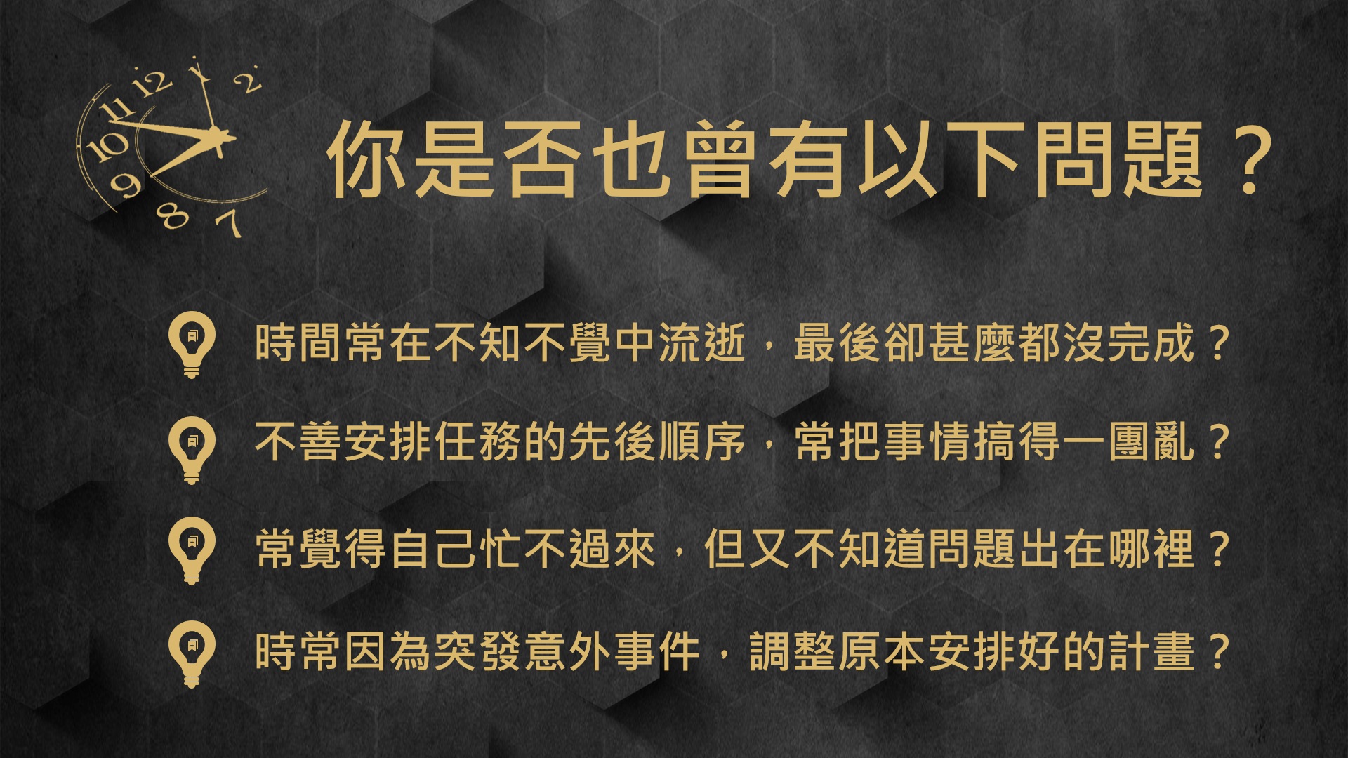 - 21:00 - 21:30 學會組織工作的方式,倍增效率