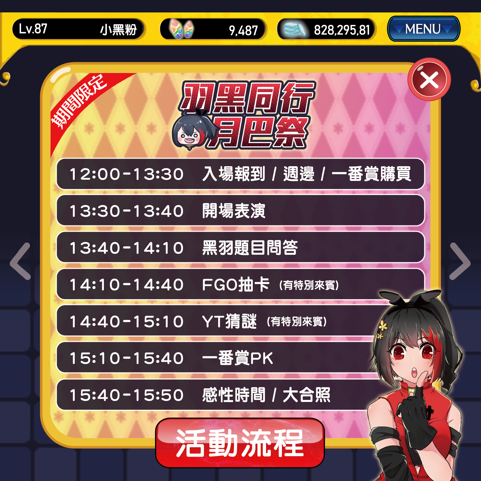 5.本次活動不會有直播,請大家關注黑羽的頻道,會有活動精華影片