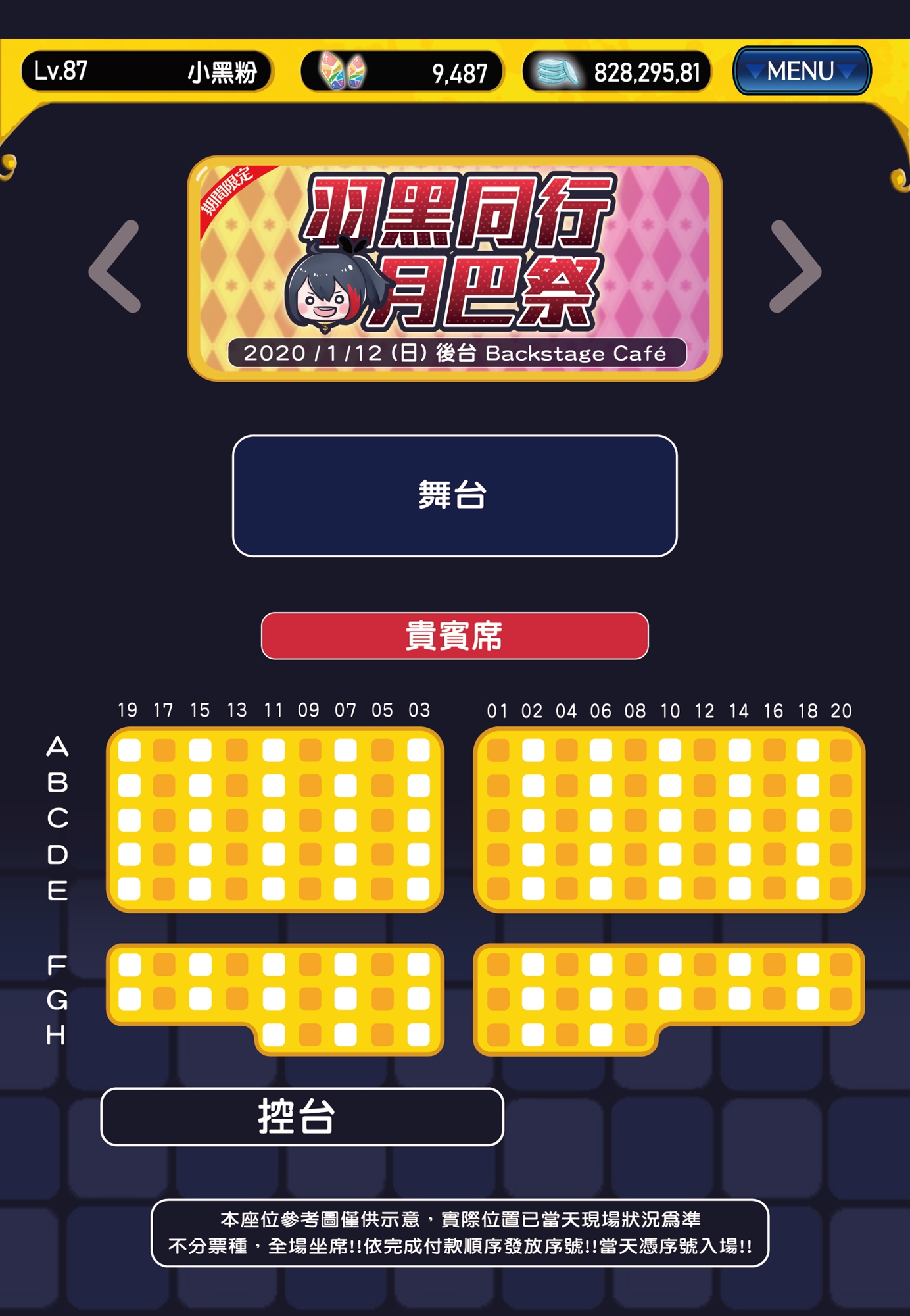 1.活動結束前都可以開放遲到粉絲進場(位子保留)