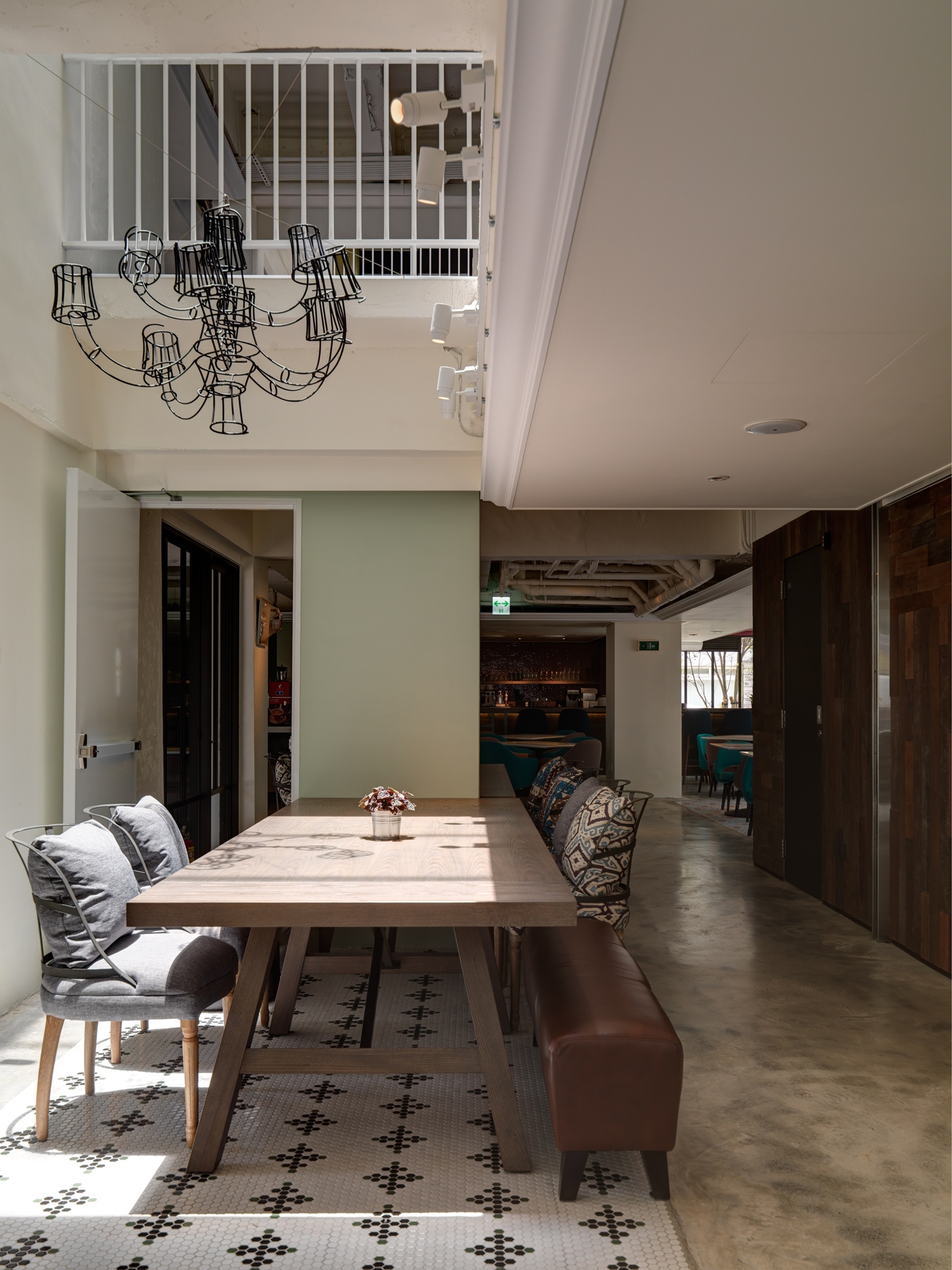 館內餐廳「Port23」大片落地窗打造新穎敞亮的內部空間,運用大量復古元素如馬賽克拼貼,妝點內部空間設計,以台灣在地優質食材重新演繹異國美食。