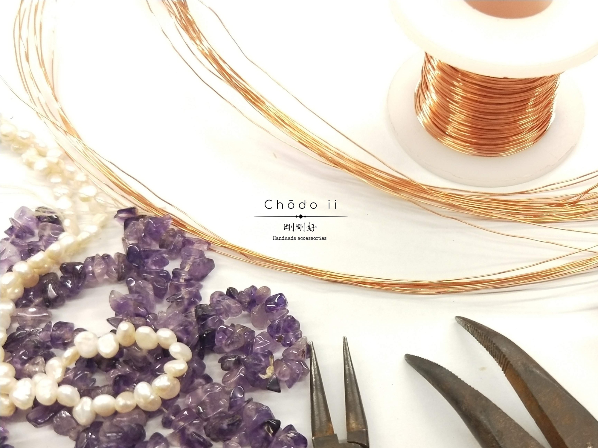 學員可依照自己的喜好,穿插紫水晶及珍珠比例,彎折角度開枝散葉~