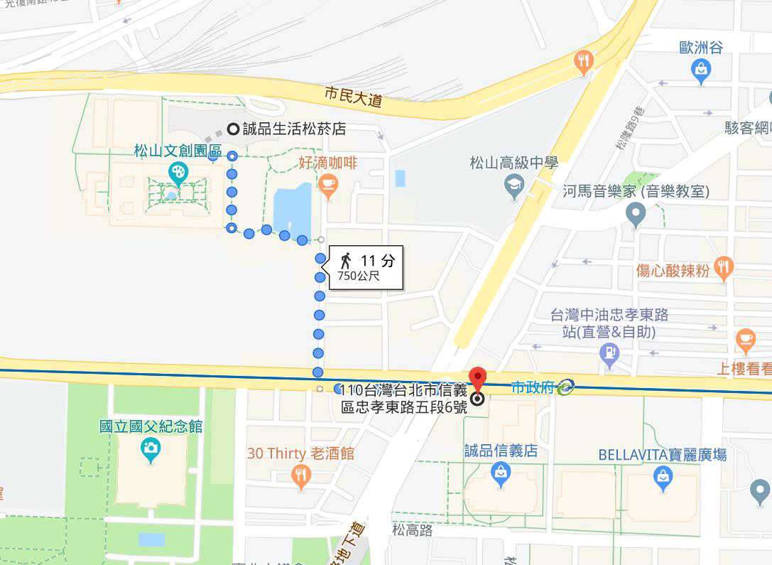 捷運: 捷運 市政府站 2 號出口,步行約 11 分鐘