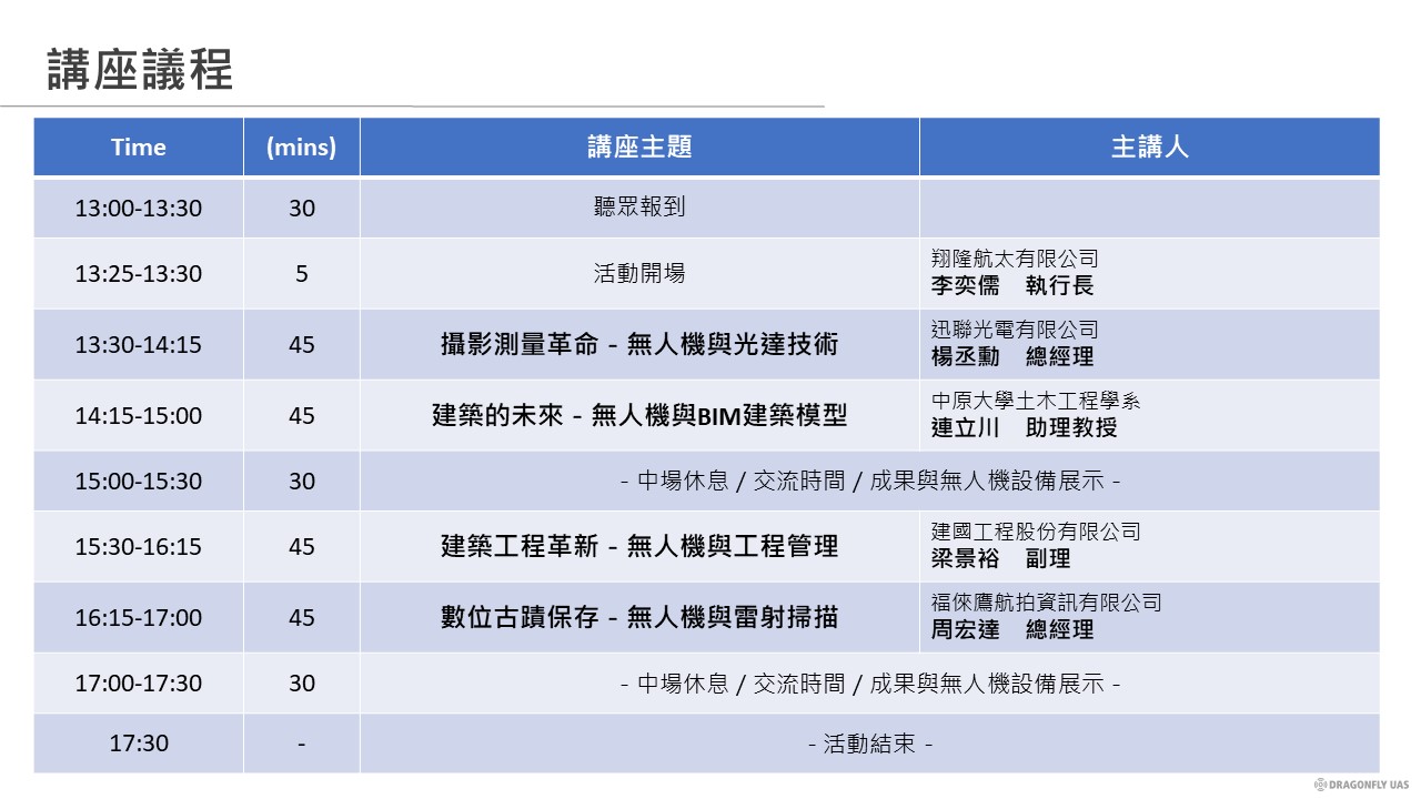 如對本活動細節相關之疑問、修改報名資訊等,敬請來信 event@dragonflyuas.com.tw
