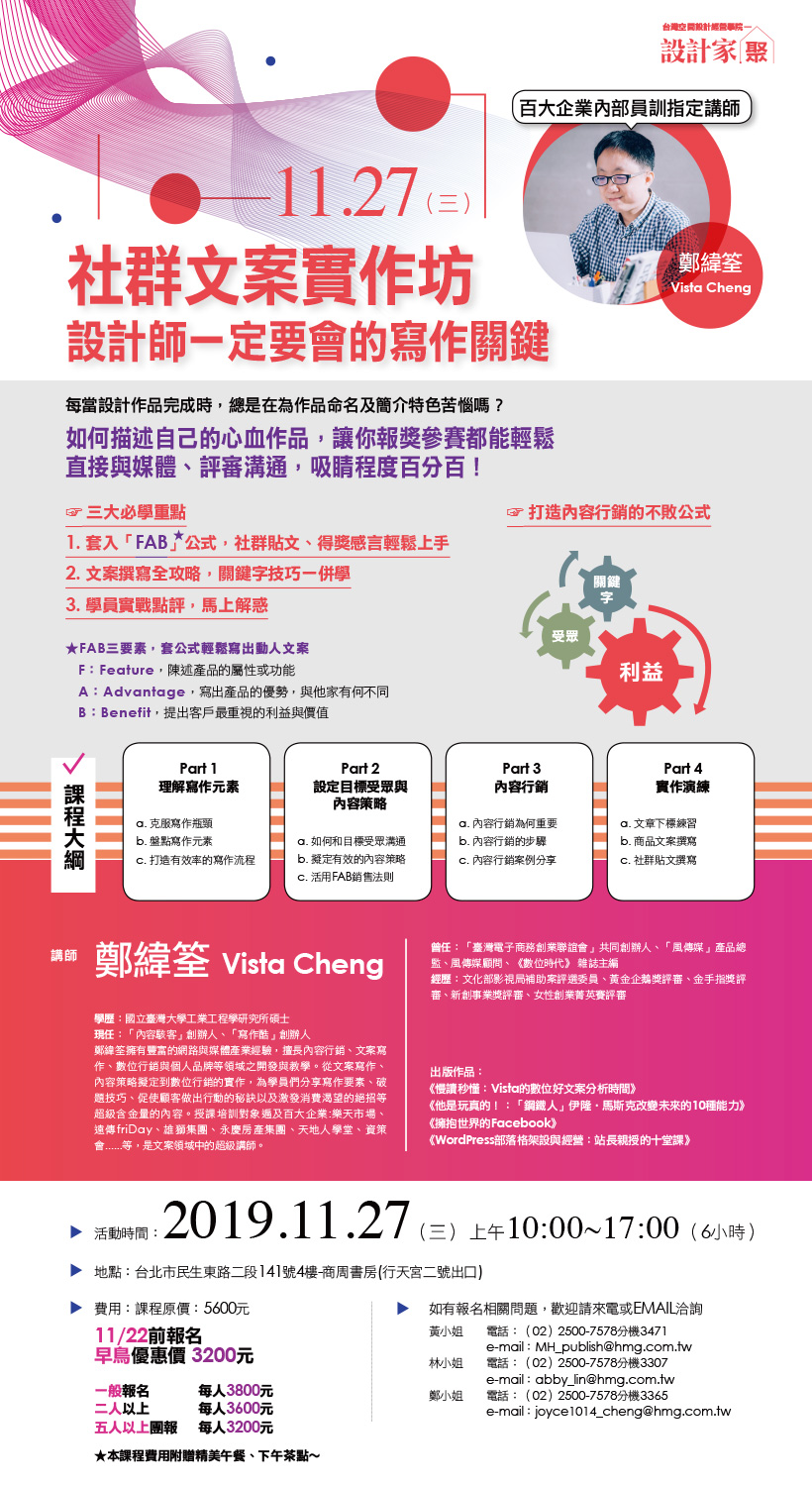 社群文案實作坊 設計師一定要會的寫作關鍵【延期舉行】