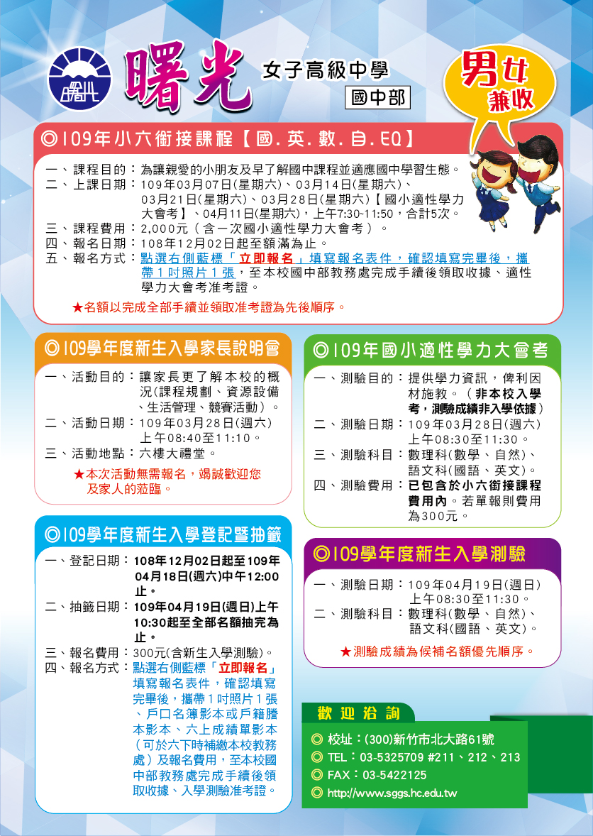 【測試版請勿報名】109學年度小六銜接課程暨新生入學登記、入學考報名