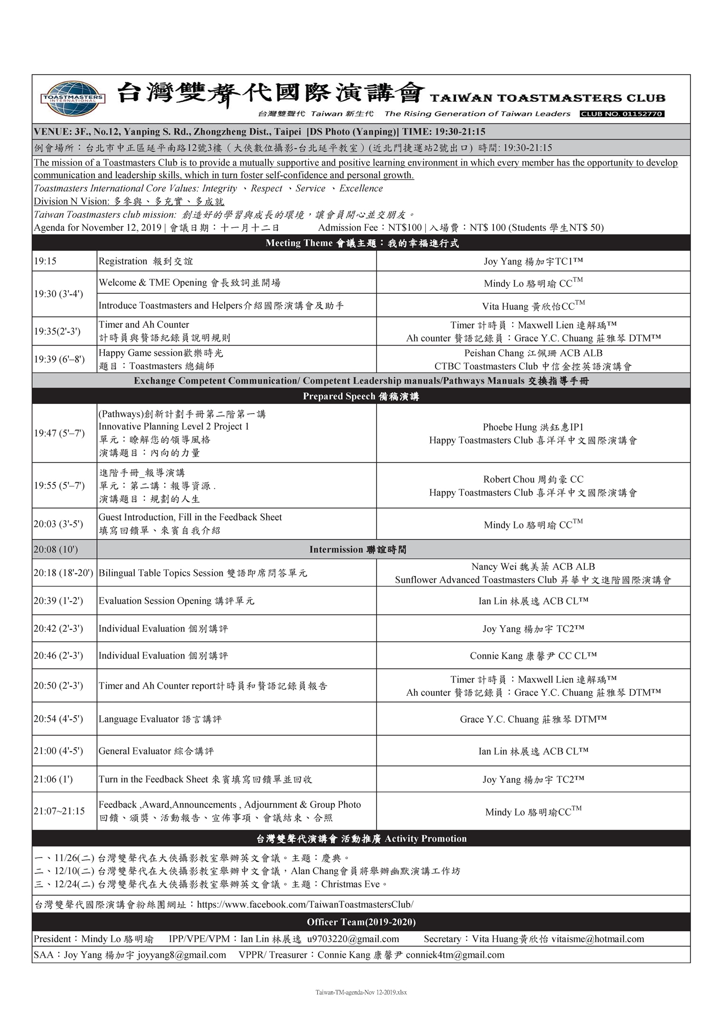 更多台灣雙聲代的動向,加入Taiwan Toastmasters Club/ 台灣雙聲代演講會粉絲團)就對了!