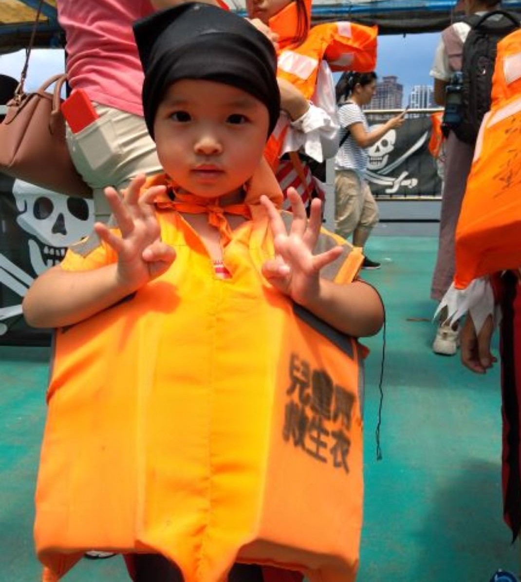 任務2〉小小海盜學習穿救生衣。