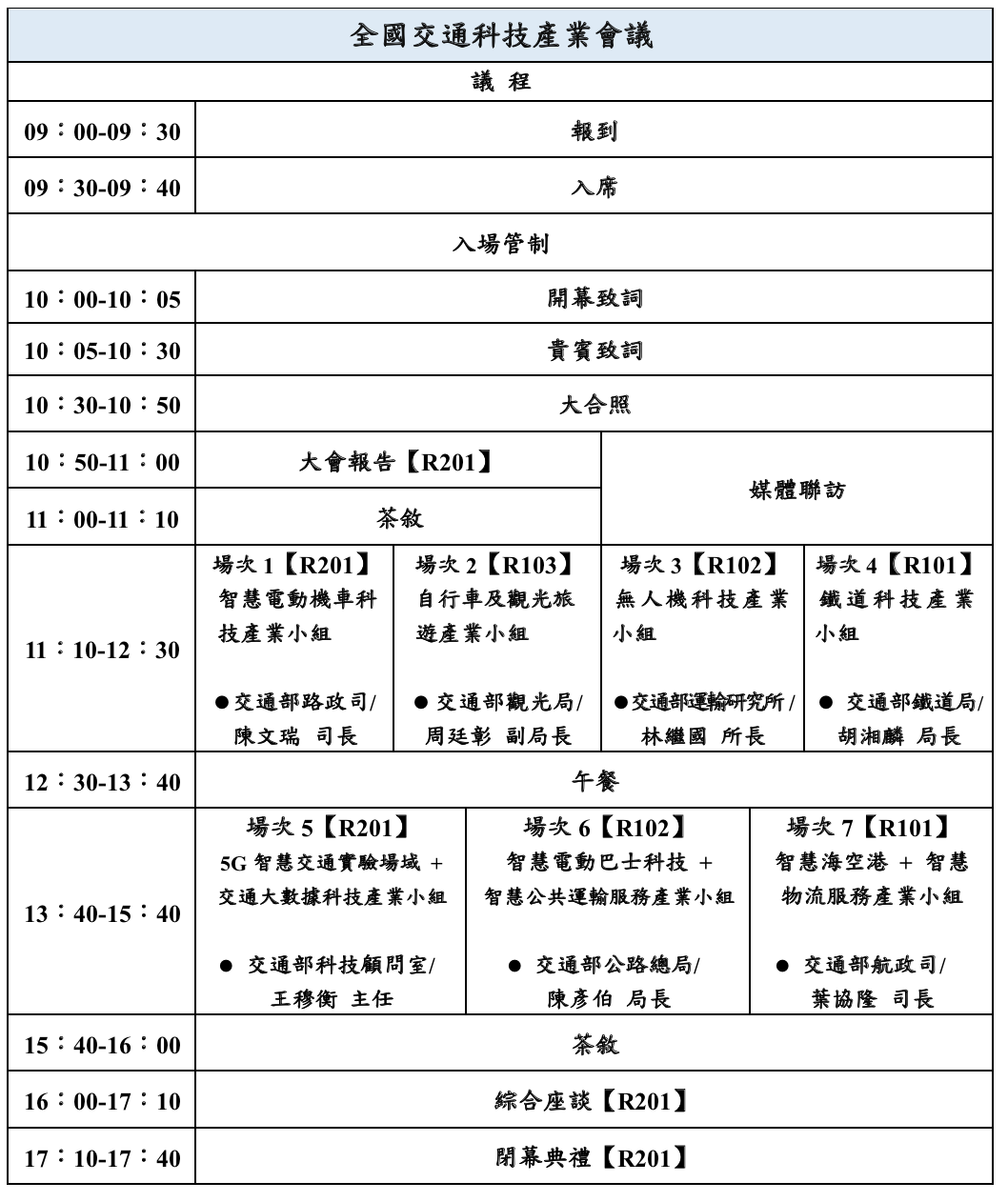 舉辦目的:為因應創新科技的快速變遷,交通部特成立「交通科技產業會報」推動治理創新。希望透過全國產官學研專家學者跨域交流,以連結科技、產業與社會,推動交通科技產業創新與興利。