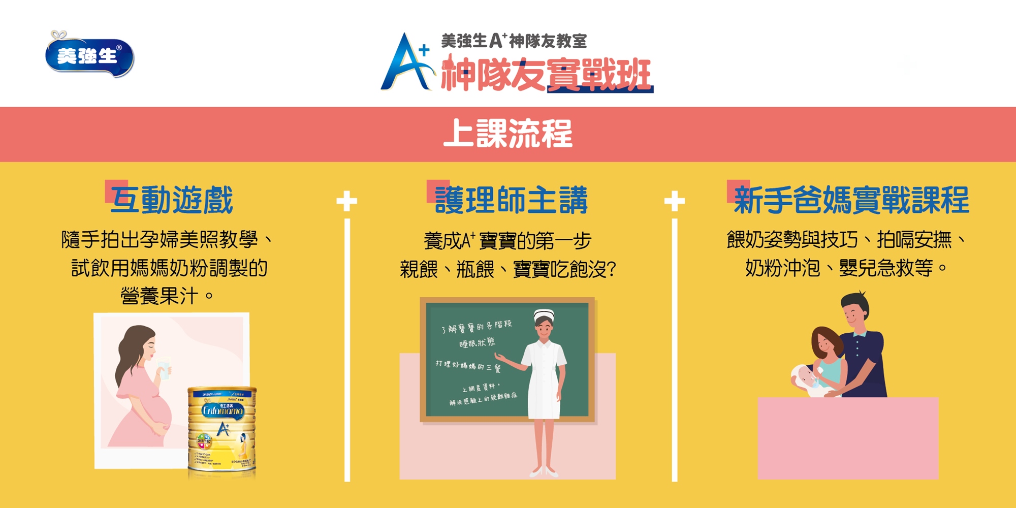孕期當中,另一半的支持與鼓勵不可或缺;寶寶出生後0-3個月中,營養攝取與睡眠是發展的重要關鍵。A+神隊友教室強調哺育的每一個小細節,育兒有方法,照顧更easy!